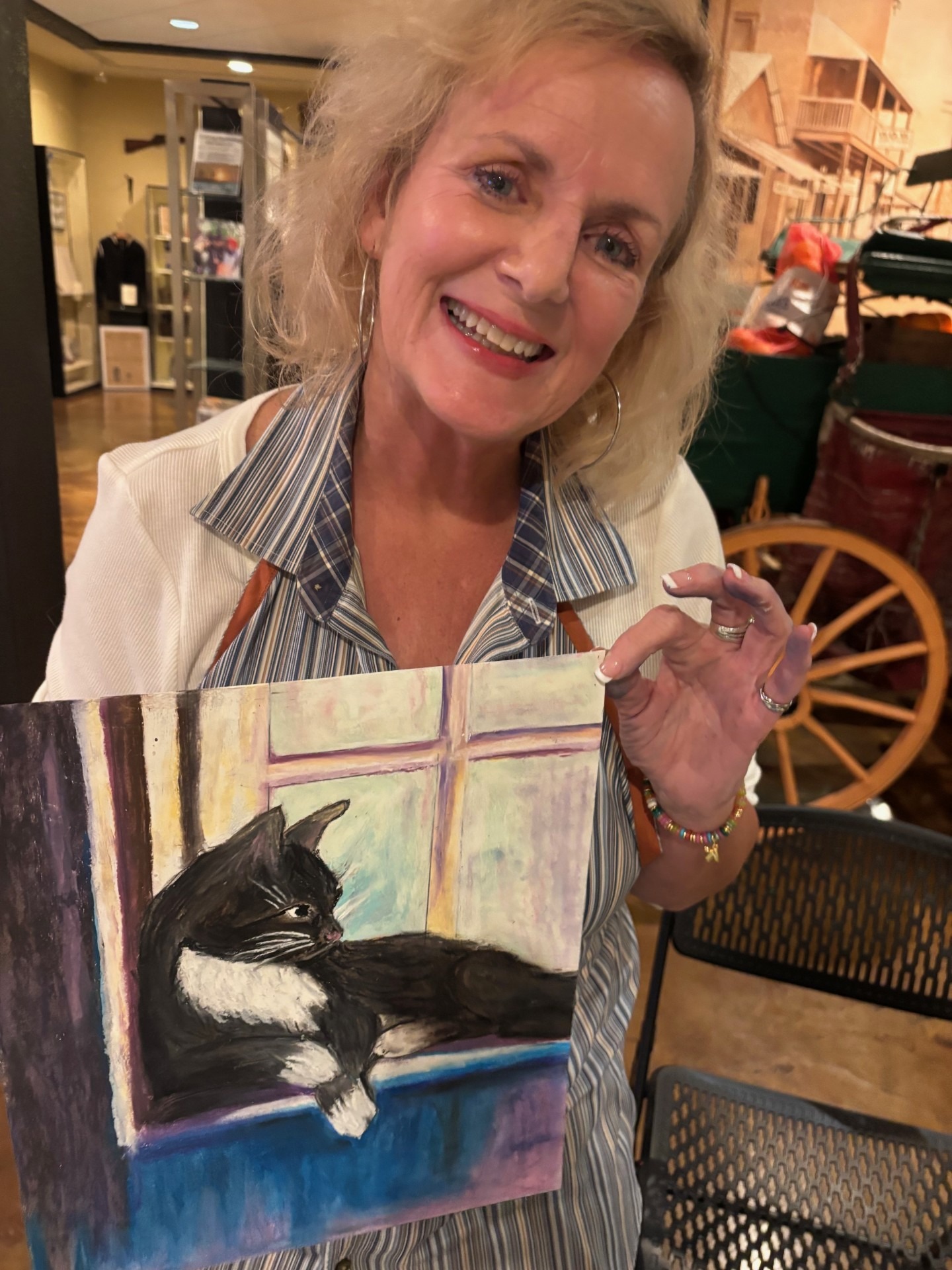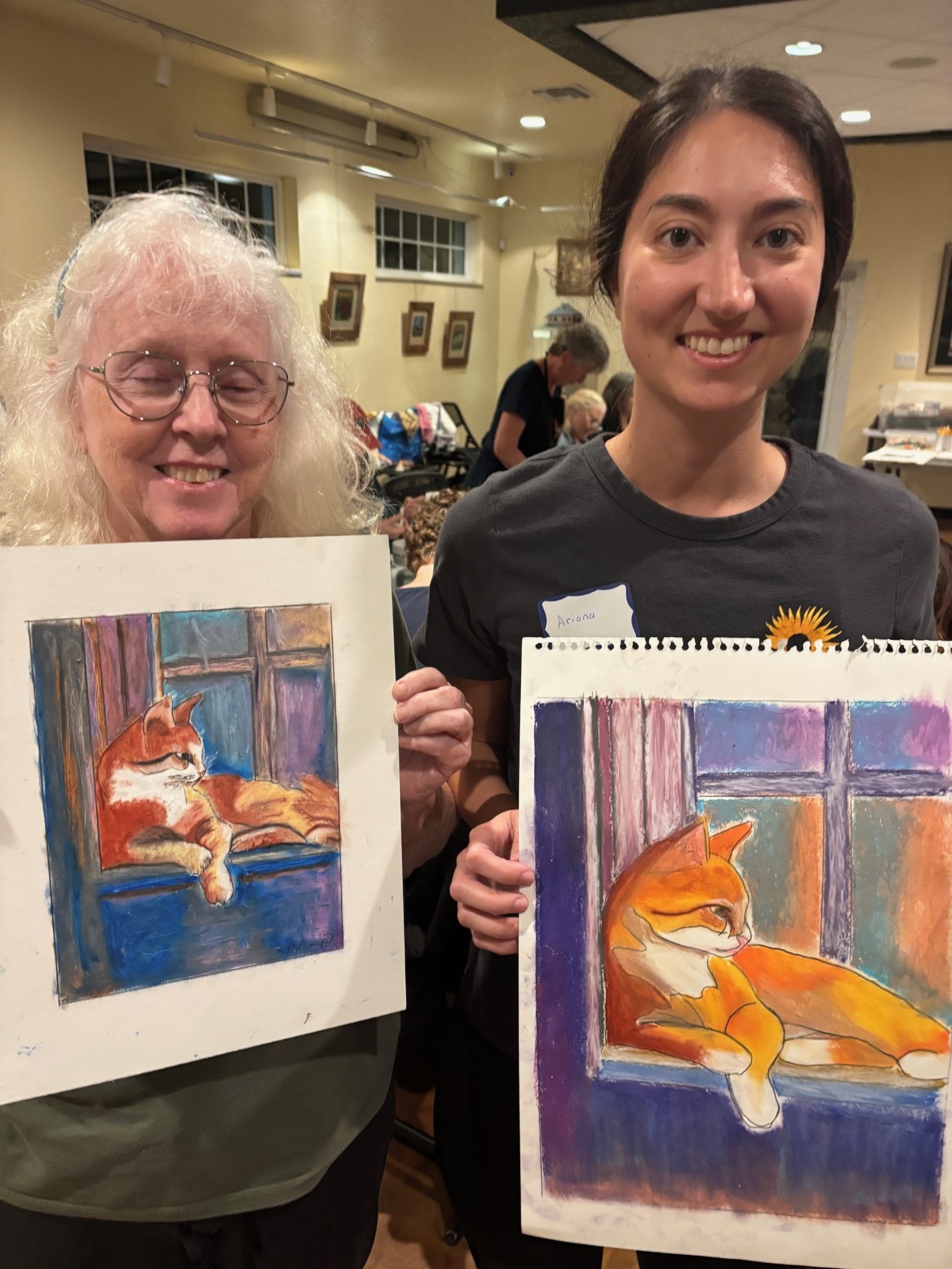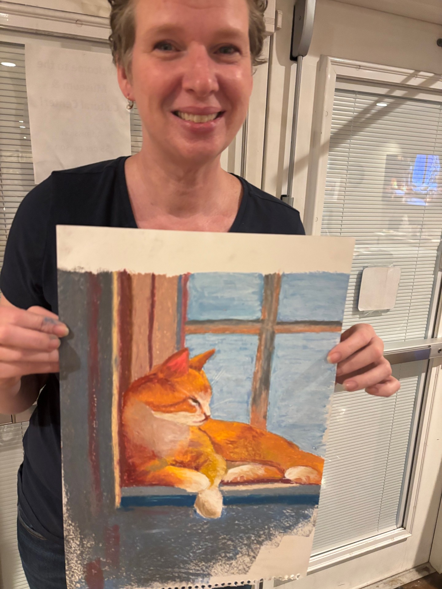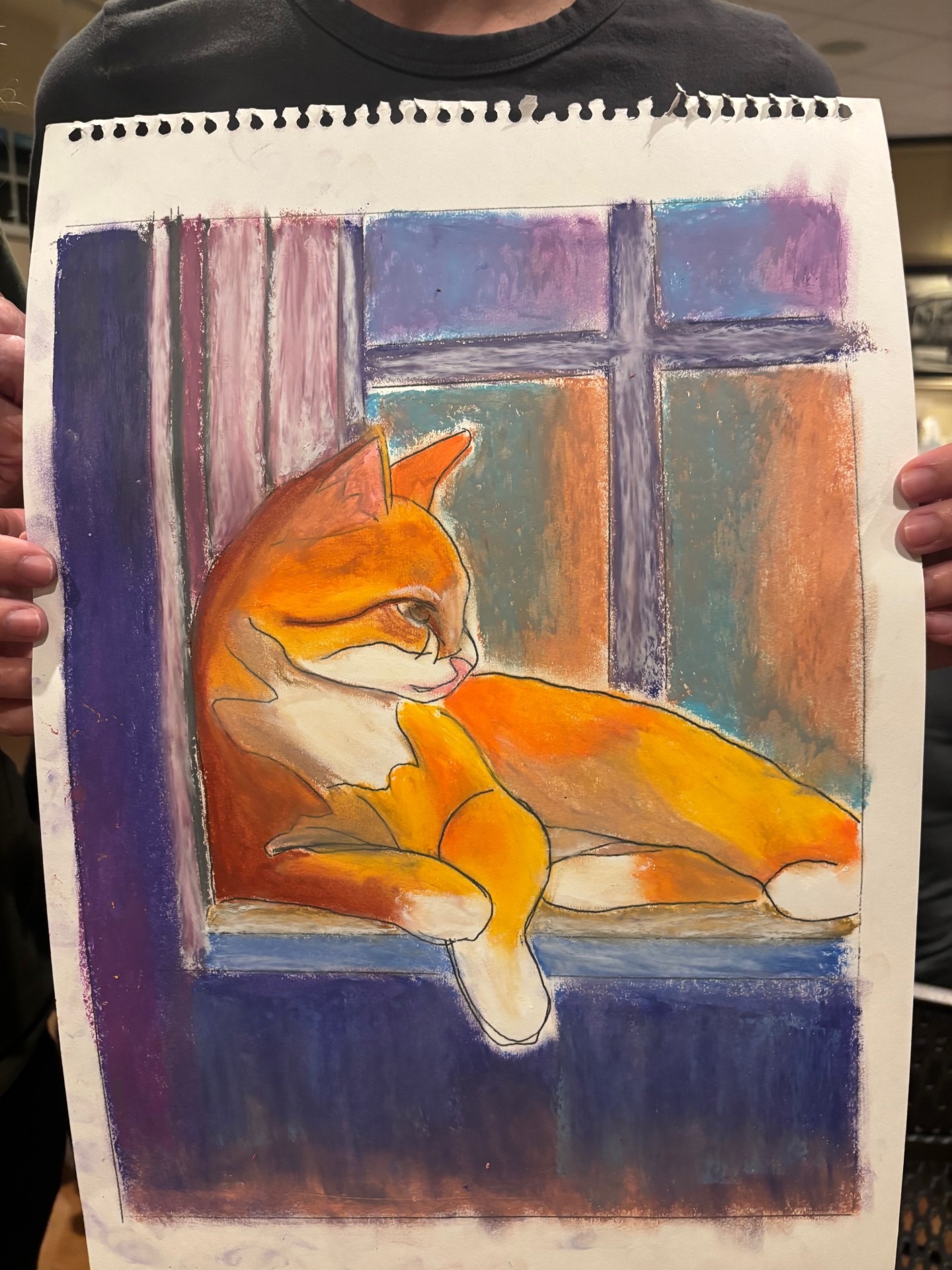 Teacher Caroline in action. Oil pastel crayon class at the museum